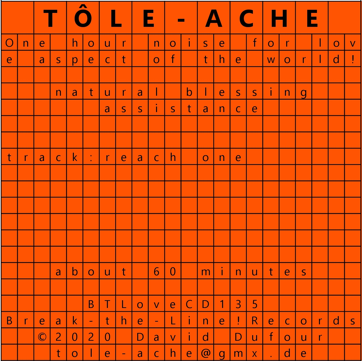 Tôle-Ache explores random sound effects and the psycho-acoustic impact of prolonged listening to sounds that either barely evolve or do not evolve at all.