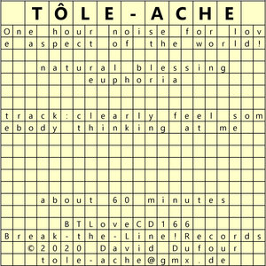 Tôle-Ache explores random sound effects and the psycho-acoustic impact of prolonged listening to sounds that either barely evolve or do not evolve at all.
