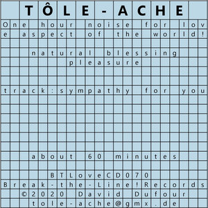 Tôle-Ache presents work on exasperation music, random sound effects and the psycho-acoustic effects during prolonged listening while the sounds do not evolve or evolve just a little.